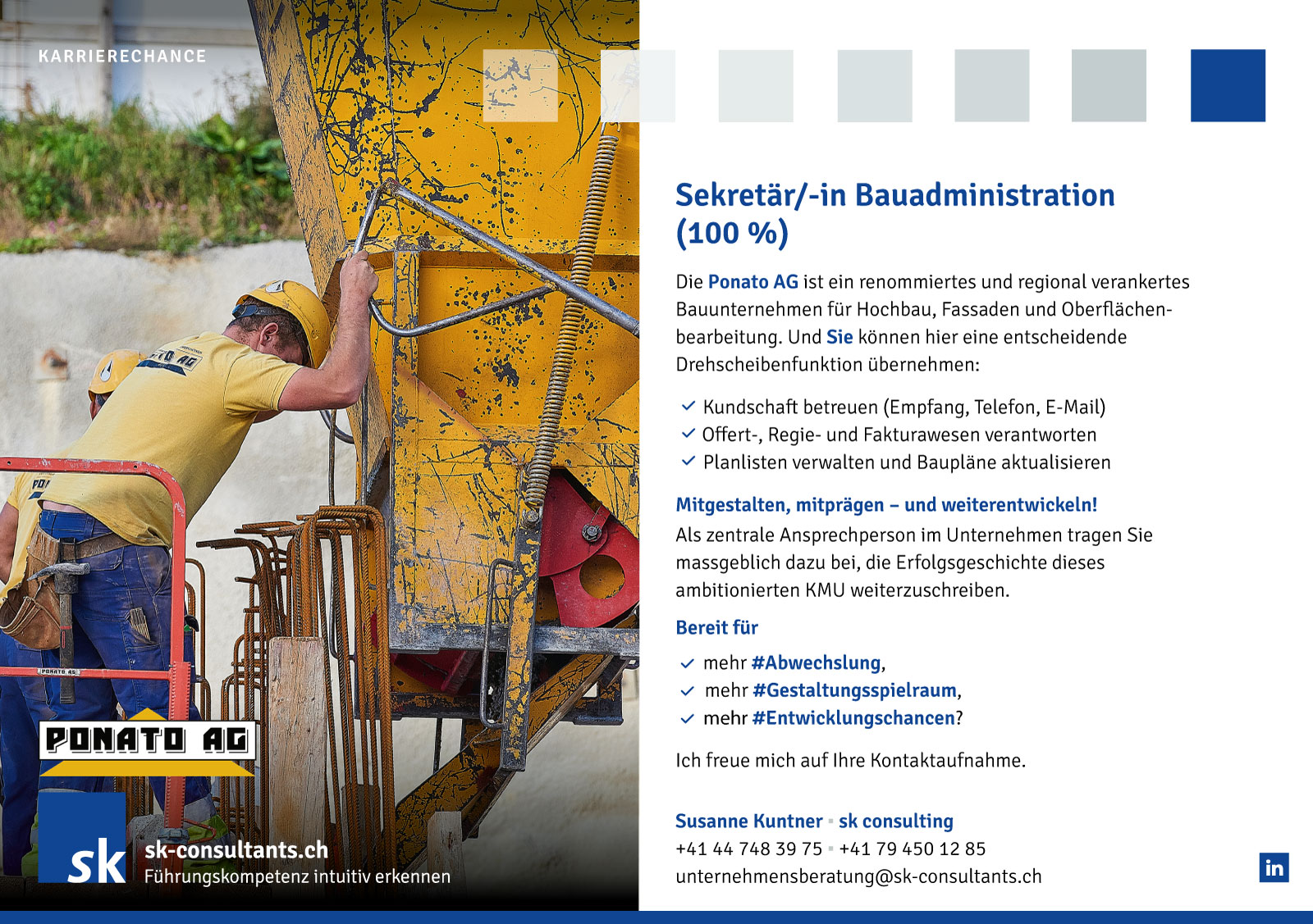 Bauprofi mit Admin-Flair als Verantwortlicher Backoffice (m/w) Hier können Sie sich an der Schnittstelle zwischen Technik, Administration und Aussenkontakten eine einzigartige Position aufbauen!